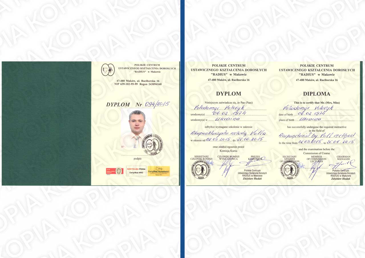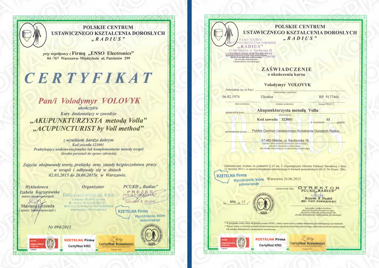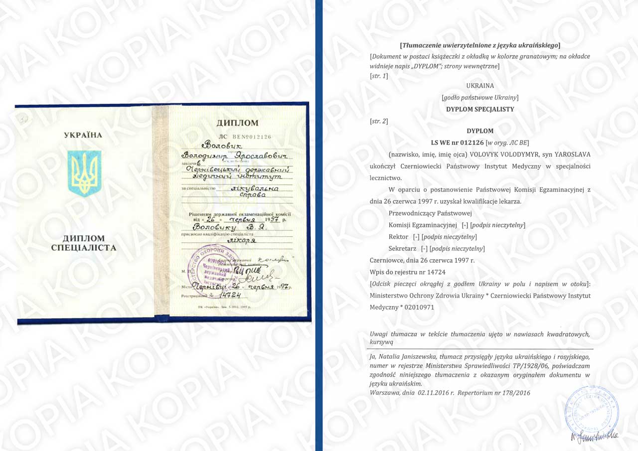 - w 1997 roku ukończyłem Bukowińską Państwową Akademie Medyczną specjalizacji: lekarz – neurolog oraz drugą specjalizacją – lekarz medycyny niekonwencjonalnej.